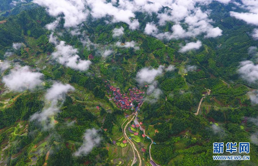 這是烏英苗寨全景(6月7日攝,無(wú)人機(jī)照片)。新華社記者 黃孝邦 攝