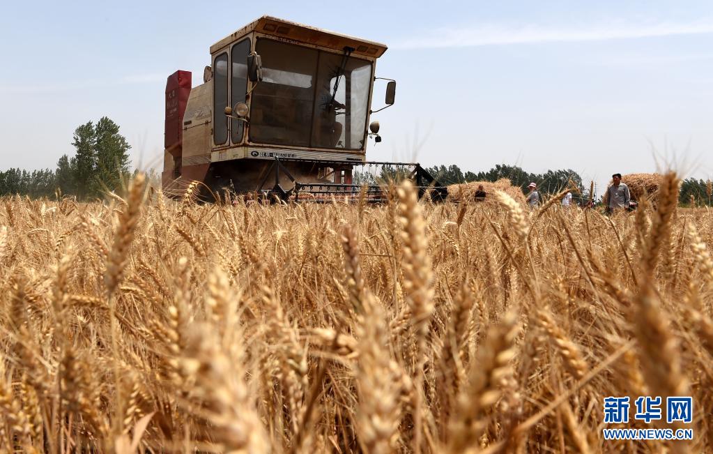 2015 年 6 月 6 日,一輛聯合收割機在河南省開封市尉氏縣張市鎮(zhèn)王崗村的麥田里作業(yè)。 新華社記者 李博 攝