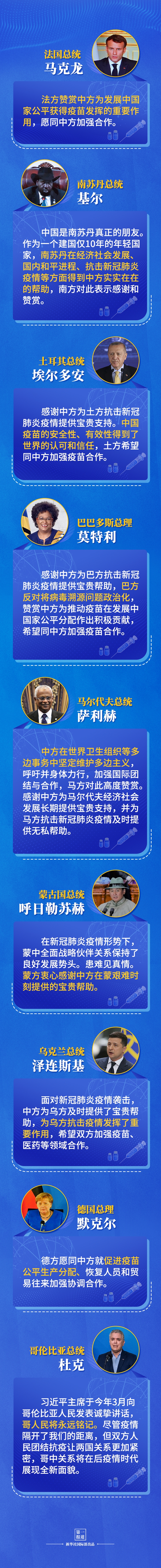 疫苗是戰(zhàn)勝疫情和恢復(fù)經(jīng)濟(jì)的有力武器。中方克服自身大規(guī)模接種帶來的挑戰(zhàn),向發(fā)展中國(guó)家提供了5億多劑疫苗,未來3年內(nèi)還將再提供30億美元國(guó)際援助,用于支持發(fā)展中國(guó)家抗疫和恢復(fù)經(jīng)濟(jì)社會(huì)發(fā)展。