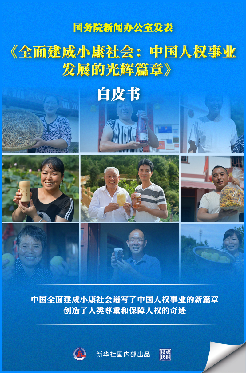 新華社北京8月12日電 國(guó)務(wù)院新聞辦公室12日發(fā)表《全面建成小康社會(huì):中國(guó)人權(quán)事業(yè)發(fā)展的光輝篇章》白皮書。