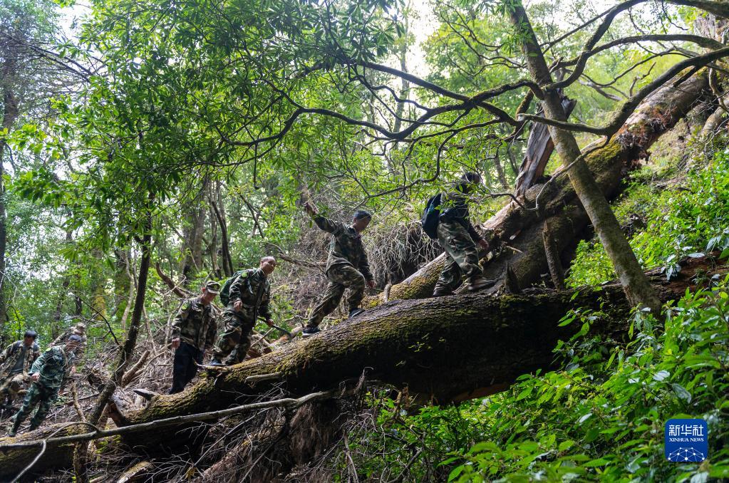 高黎貢山國(guó)家級(jí)自然保護(hù)區(qū)瀘水專職巡護(hù)隊(duì)在山間巡護(hù)(3月12日攝)。新華社記者 陳欣波 攝