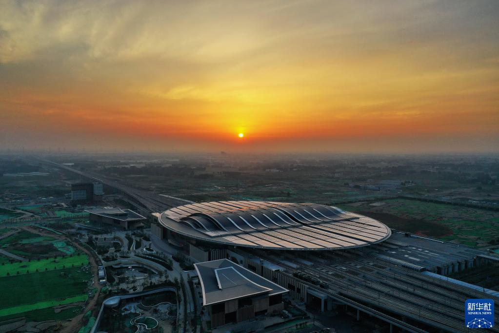 這是7月1日拍攝的京雄城際鐵路雄安站(無人機(jī)照片)。新華社記者 牟宇 攝