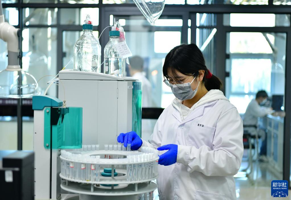 研發(fā)分析人員在南開大學(xué)·滄州渤海新區(qū)綠色化工研究院分析測試中心工作(10月12日攝)。新華社記者 楊世堯 攝
