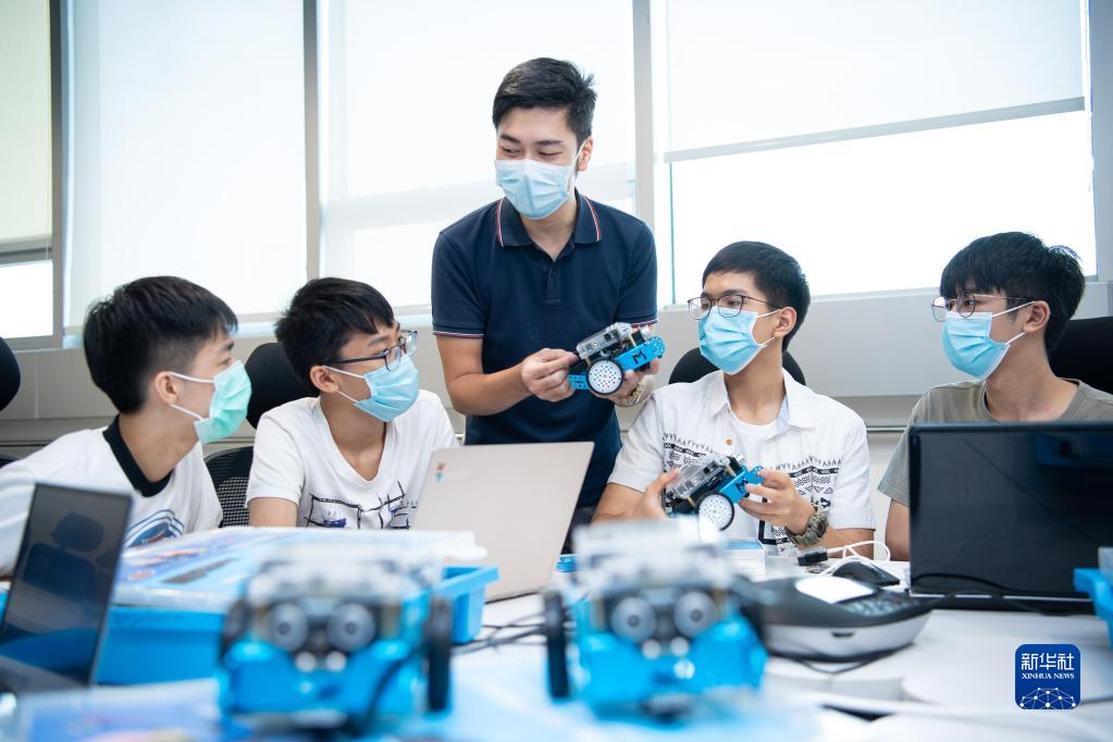 2020年7月14日,創(chuàng)業(yè)者吳以航在澳門青年創(chuàng)業(yè)孵化中心為學生上培訓課?!?0后”吳以航是澳門青年創(chuàng)業(yè)孵化中心會員,2019年,他進駐廣州市天河區(qū)港澳青年之家,成立藍點教育技術(廣州)有限公司。新華社記者 張金加 攝