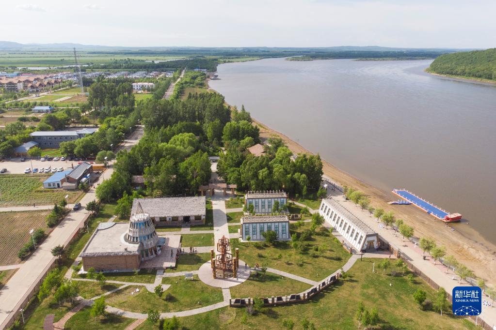 這是6月23日拍攝的黑龍江省雙鴨山市饒河縣四排赫哲族鄉(xiāng)四排村赫哲風(fēng)情園(無人機照片)。新華社記者 張濤 攝