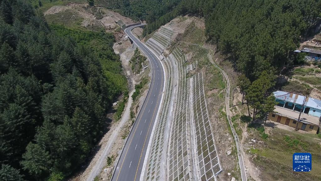 這是2020年7月28日拍攝的巴基斯坦喀喇昆侖公路二期項(xiàng)目曼塞赫拉至塔科特二級(jí)公路段??龉范陧?xiàng)目將中巴友誼公路向南延伸,融入巴南北交通干線。新華社發(fā)(中國交通建設(shè)股份有限公司供圖)
