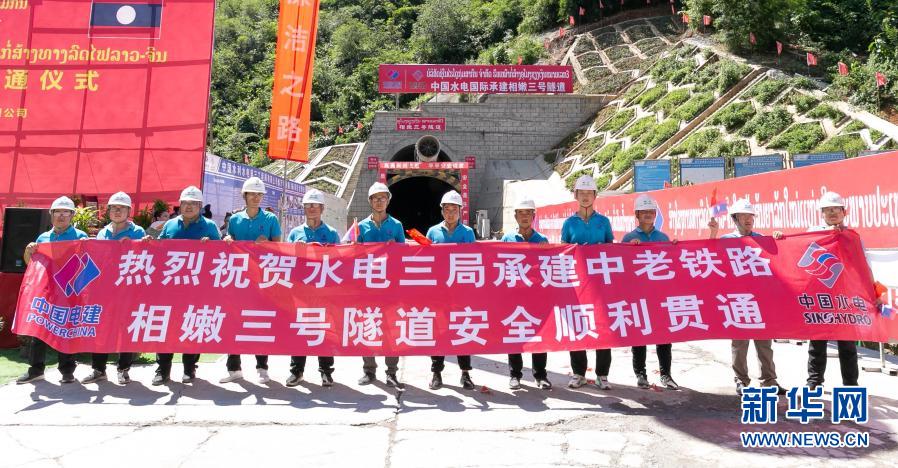 這是9月29日在老撾北部瑯勃拉邦省拍攝的相嫩三號隧道貫通儀式現場。新華社發(fā)(凱喬攝)