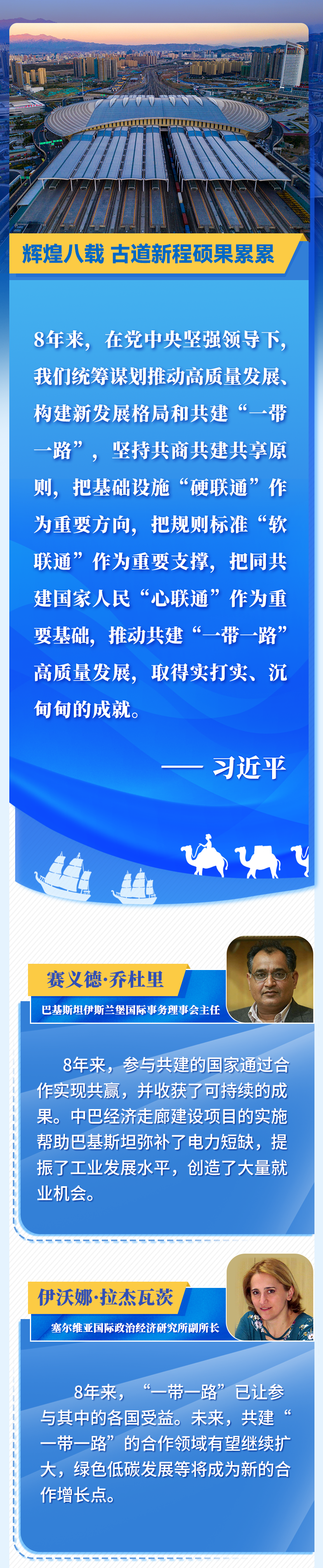 中共中央總書記、國(guó)家主席、中央軍委主席習(xí)近平19日在北京出席第三次“一帶一路”建設(shè)座談會(huì)并發(fā)表重要講話。多國(guó)人士和我海外項(xiàng)目人員表示,“一帶一路”倡議提出8年來(lái)取得實(shí)實(shí)在在成果,習(xí)近平主席的重要講話為繼續(xù)推動(dòng)共建“一帶一路”高質(zhì)量發(fā)展擘畫藍(lán)圖、指明方向,期待共建“一帶一路”不斷取得新成效,更好造福各國(guó)人民。