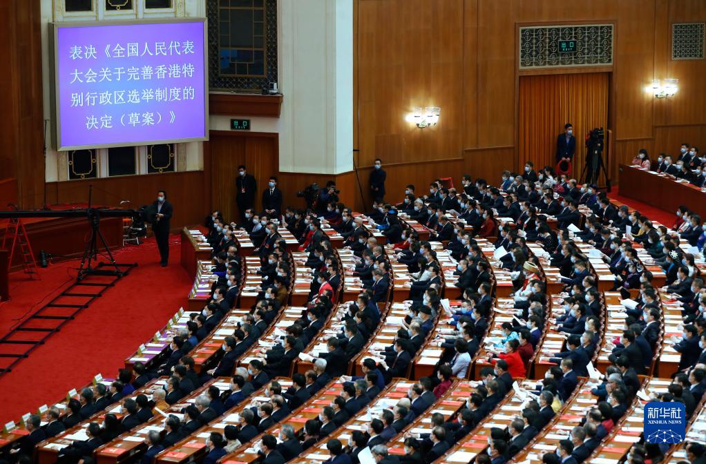 3月11日,十三屆全國(guó)人大四次會(huì)議表決通過(guò)《全國(guó)人民代表大會(huì)關(guān)于完善香港特別行政區(qū)選舉制度的決定》。這是繼制定實(shí)施香港國(guó)安法后,中央依法治港的又一重大舉措,是完善“一國(guó)兩制”制度體系、落實(shí)中央對(duì)香港全面管治權(quán)的具體體現(xiàn),為全面落實(shí)“愛(ài)國(guó)者治港”原則提供了更加堅(jiān)實(shí)的制度保障。3月30日,十三屆全國(guó)人大常委會(huì)第二十七次會(huì)議通過(guò)了新修訂的香港基本法附件一和附件二。隨后,香港特別行政區(qū)完成本地立法。新選舉制度為推進(jìn)香港民主穩(wěn)步發(fā)展、實(shí)現(xiàn)良政善治,促進(jìn)“一國(guó)兩制”實(shí)踐行穩(wěn)致遠(yuǎn)打下堅(jiān)實(shí)基礎(chǔ)。