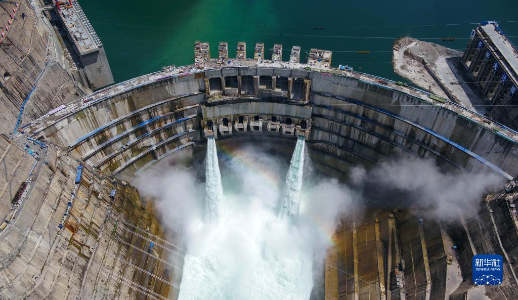 這是2021年6月10日拍攝的金沙江白鶴灘水電站。白鶴灘水電站是實(shí)施“西電東送”的國(guó)家重大工程,是當(dāng)今世界在建規(guī)模最大、技術(shù)難度最高的水電工程(無(wú)人機(jī)照片)。新華社記者 胥冰潔 攝