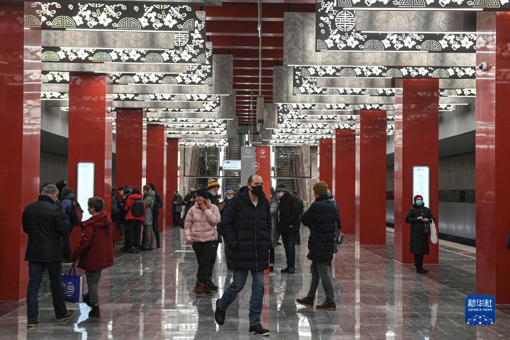 2021年12月7日,在俄羅斯首都莫斯科,乘客走在莫斯科地鐵第三換乘環(huán)線西南段米丘林大街站內(nèi)。中企在俄羅斯承建的首個(gè)地鐵項(xiàng)目——莫斯科地鐵第三換乘環(huán)線西南段項(xiàng)目當(dāng)日開(kāi)通。新華社發(fā)(葉甫蓋尼·西尼岑 攝)