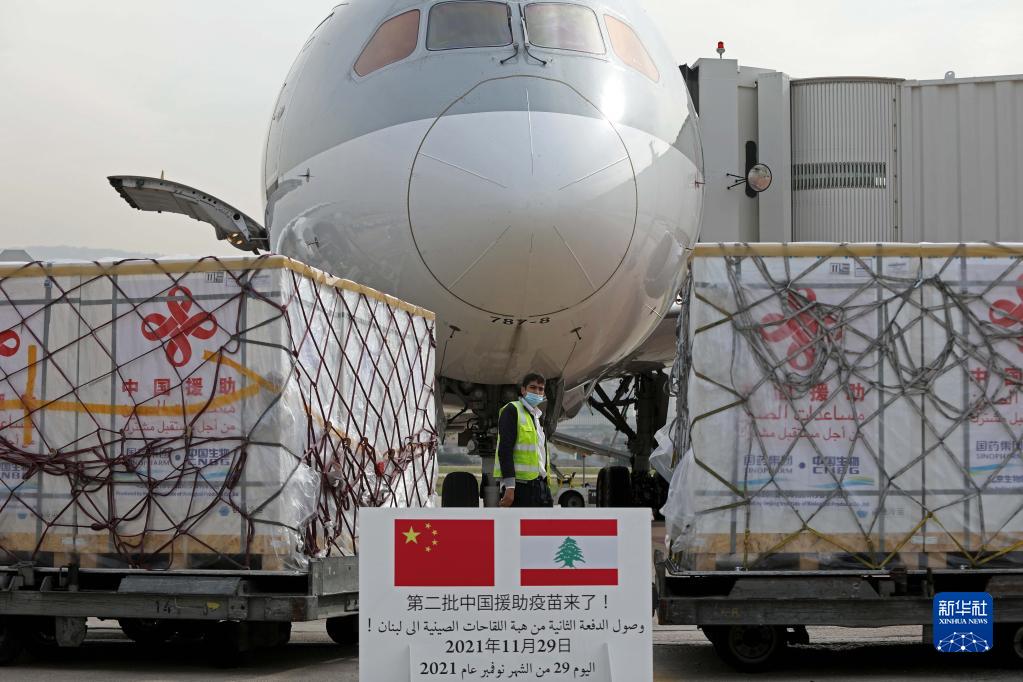 2021年11月29日,中國(guó)援助黎巴嫩第二批新冠疫苗運(yùn)抵貝魯特拉菲克·哈里里國(guó)際機(jī)場(chǎng)。新華社發(fā)(比拉爾·賈維希 攝)