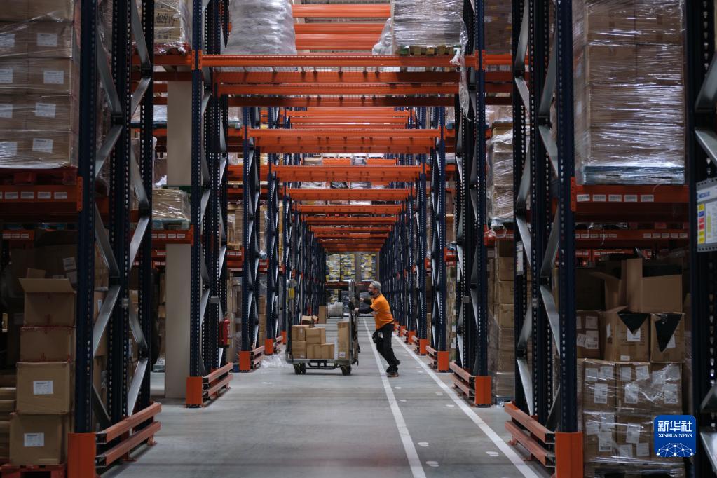2021年11月11日,工作人員在西班牙瓜達(dá)拉哈拉市的菜鳥(niǎo)網(wǎng)絡(luò)所設(shè)立的海外倉(cāng)中工作。新華社記者 孟鼎博 攝