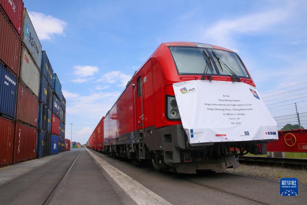 2021年6月4日,首趟從中國(guó)江蘇南京至荷蘭蒂爾堡的中歐班列抵達(dá)荷蘭蒂爾堡。新華社記者 鄭煥松 攝