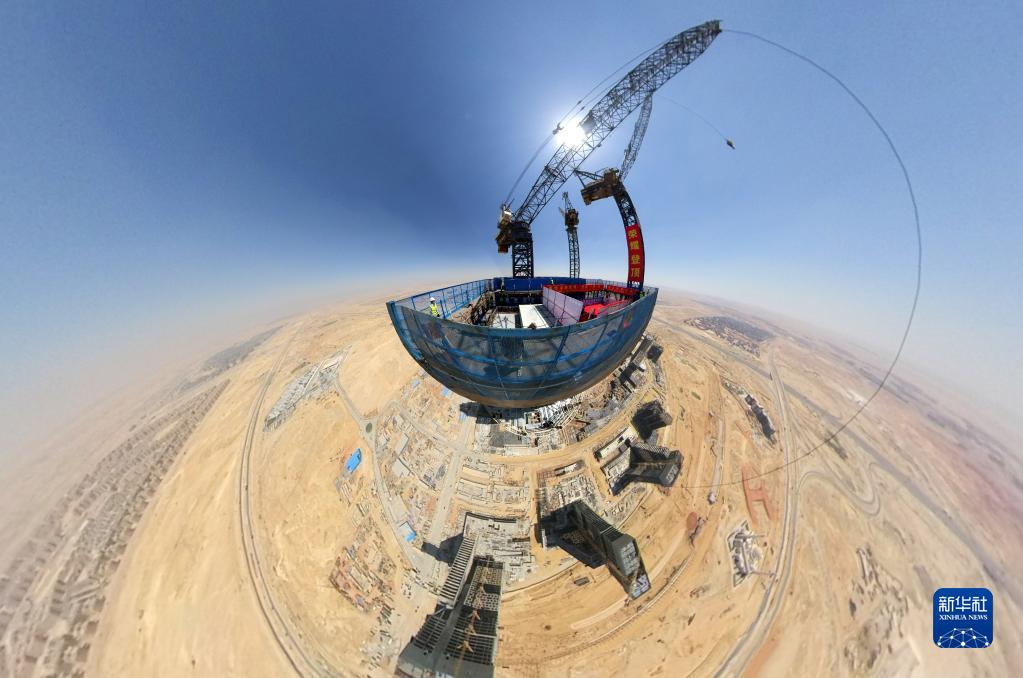 這是2021年6月17日在埃及開(kāi)羅附近拍攝的埃及新行政首都中央商務(wù)區(qū)標(biāo)志塔(全景相機(jī)拍攝)。埃及新行政首都中央商務(wù)區(qū)位于首都開(kāi)羅以東約50公里處,由中國(guó)建筑股份有限公司埃及分公司承建。新華社記者 隋先凱 攝