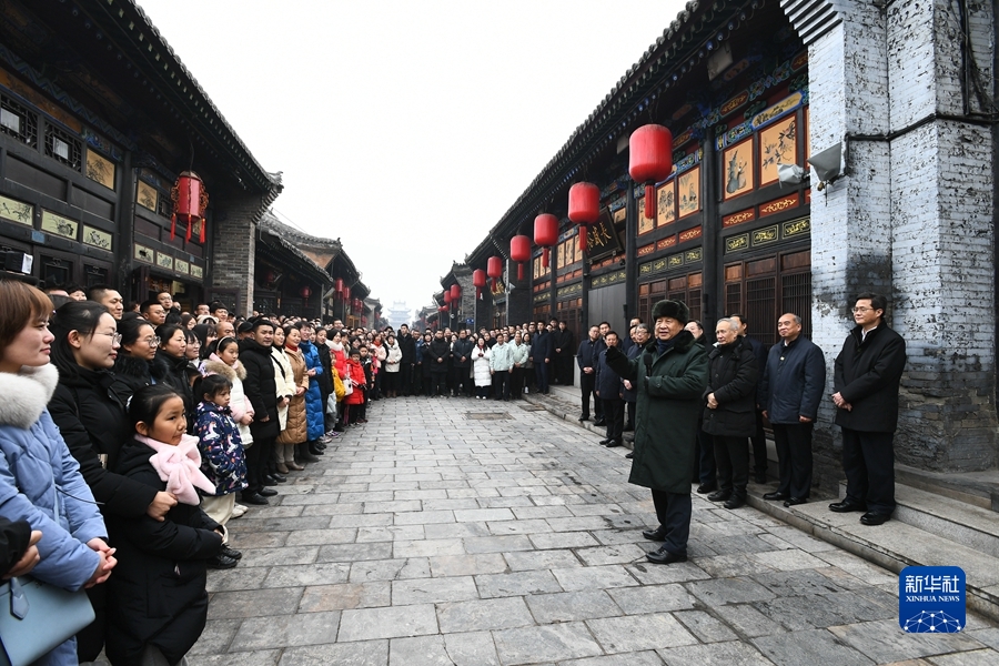 1月26日至27日,中共中央總書記、國家主席、中央軍委主席習(xí)近平來到山西,看望慰問基層干部群眾。這是27日上午,習(xí)近平在平遙古城同現(xiàn)場(chǎng)群眾親切交流。新華社記者 謝環(huán)馳 攝