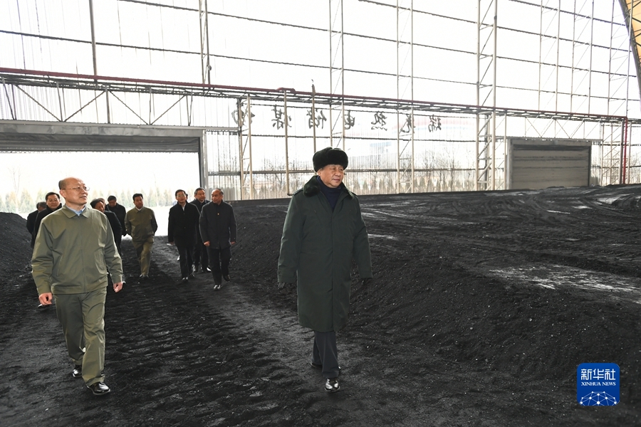 1月26日至27日,中共中央總書記、國家主席、中央軍委主席習(xí)近平來到山西,看望慰問基層干部群眾。這是27日下午,習(xí)近平在山西瑞光熱電有限責(zé)任公司儲(chǔ)煤場(chǎng)察看煤場(chǎng)儲(chǔ)煤情況。新華社記者 謝環(huán)馳 攝