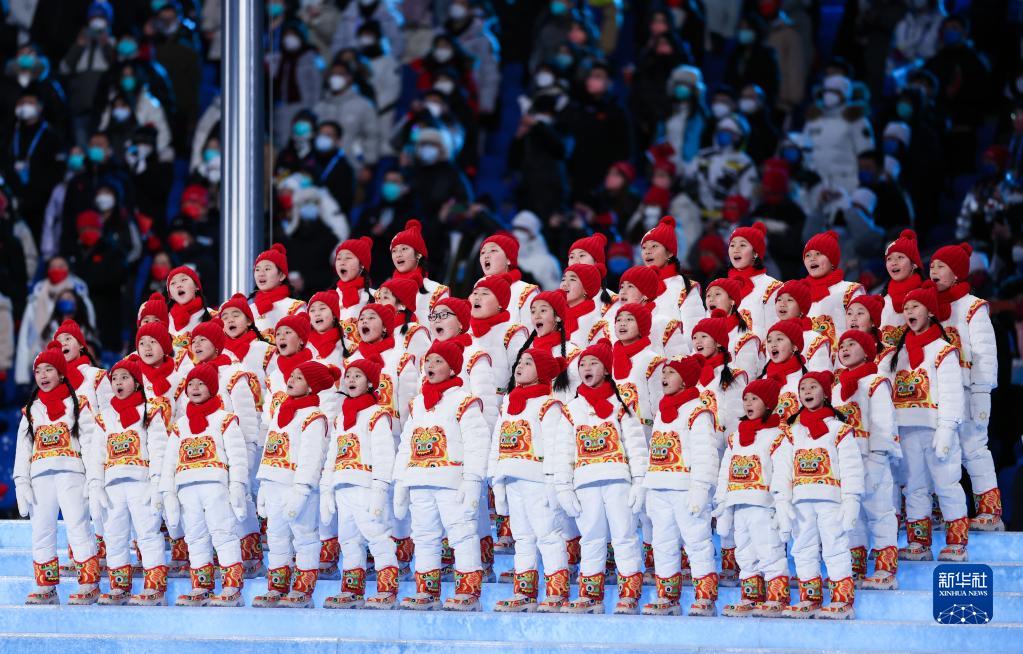 2月4日晚,第二十四屆冬季奧林匹克運動會開幕式在北京國家體育場舉行。這是“馬蘭花兒童合唱團”用希臘語在開幕式上歌唱。新華社記者 曹燦 攝