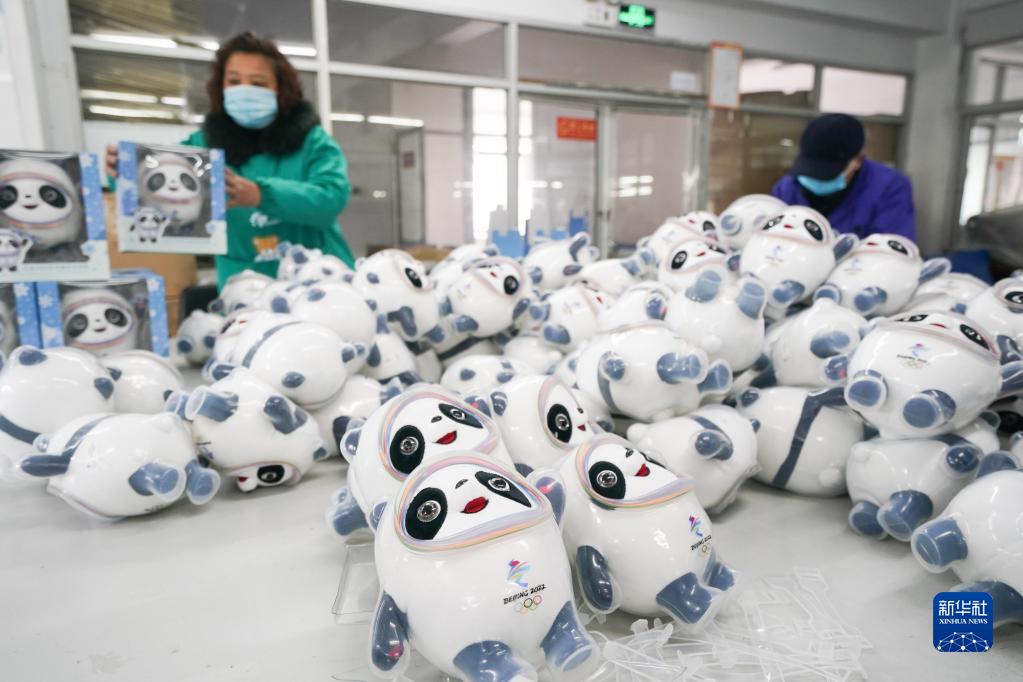 2月8日,工人在江蘇省啟東市一家北京冬奧會吉祥物“冰墩墩”特許生產(chǎn)商的車間里忙碌。新華社記者 季春鵬 攝