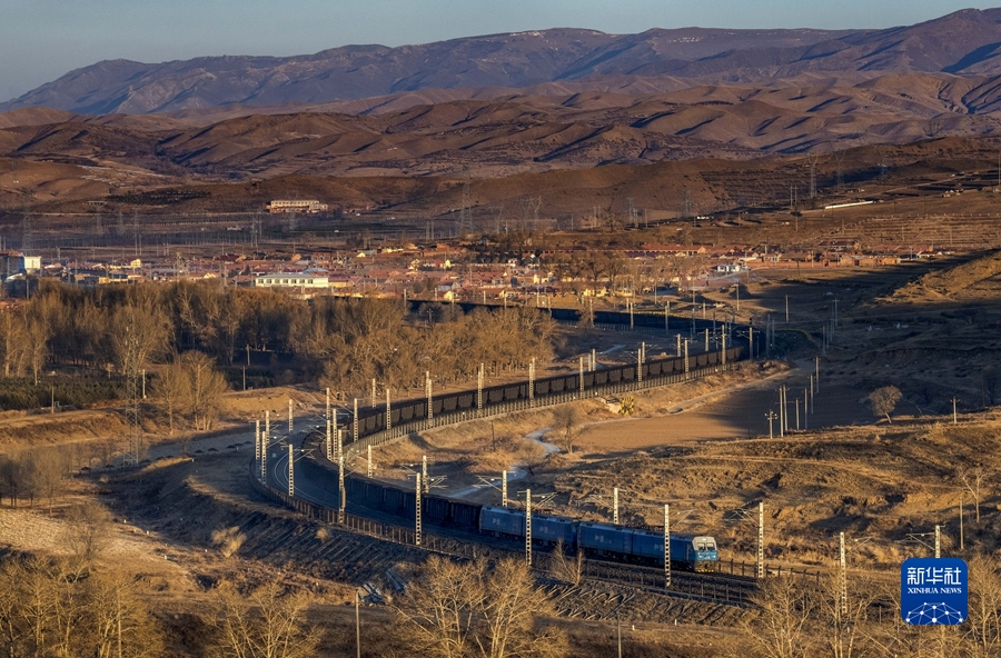 2021年12月23日,一列萬噸煤炭列車行駛在內(nèi)蒙古烏蘭察布市卓資縣境內(nèi)。新華社發(fā)(紀(jì)恩泉 攝)