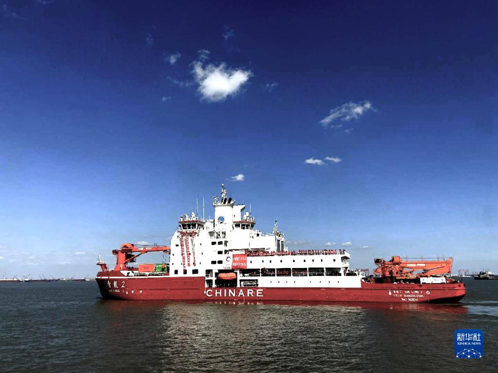 2020年11月10日,中國第37次南極科學(xué)考察隊(duì)乘坐“雪龍2”號極地科考破冰船從上海起航,奔赴南極執(zhí)行科學(xué)考察任務(wù),這是“雪龍2”號極地科考破冰船駛離碼頭。新華社發(fā)(中國極地研究中心供圖)