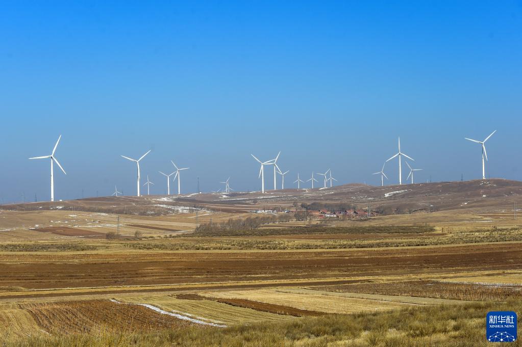 這是1月20日拍攝的位于烏蘭察布市察哈爾右翼中旗的恒潤(rùn)風(fēng)電場(chǎng)。新華社記者 李志鵬 攝