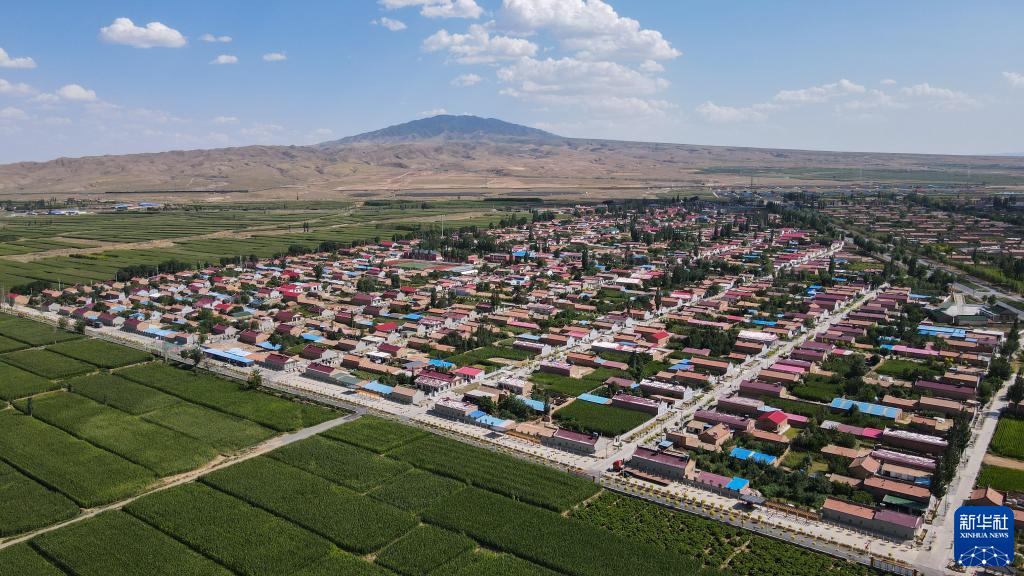 寧夏吳忠市紅寺堡區(qū)柳泉鄉(xiāng)永新村(2021年7月29日攝,無(wú)人機(jī)照片)。新華社記者 徐欽 攝