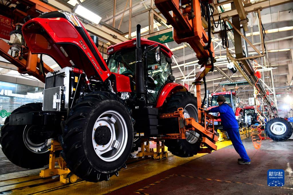 2月15日,在山東五征集團山拖農(nóng)業(yè)裝備有限公司,工人在生產(chǎn)線上裝配農(nóng)用拖拉機。新華社記者 郭緒雷 攝