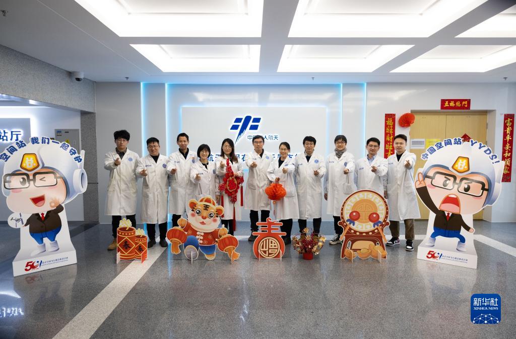 1月30日,在航天科技集團五院在軌航天器支持中心數(shù)字空間站外,空間站任務(wù)飛控試驗隊科研人員合影留念。新華社記者 金立旺 攝