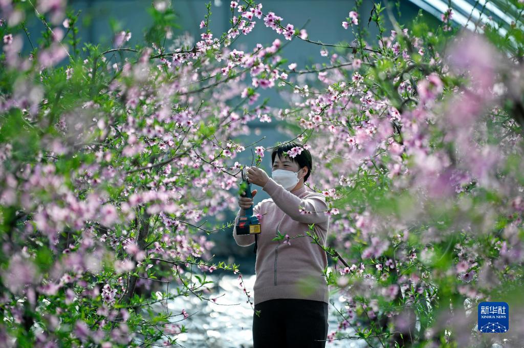 2月15日,寧夏青銅峽市大壩鎮(zhèn)韋橋村村民李文會在日光溫室為桃樹疏果、剪枝。新華社記者 王鵬 攝