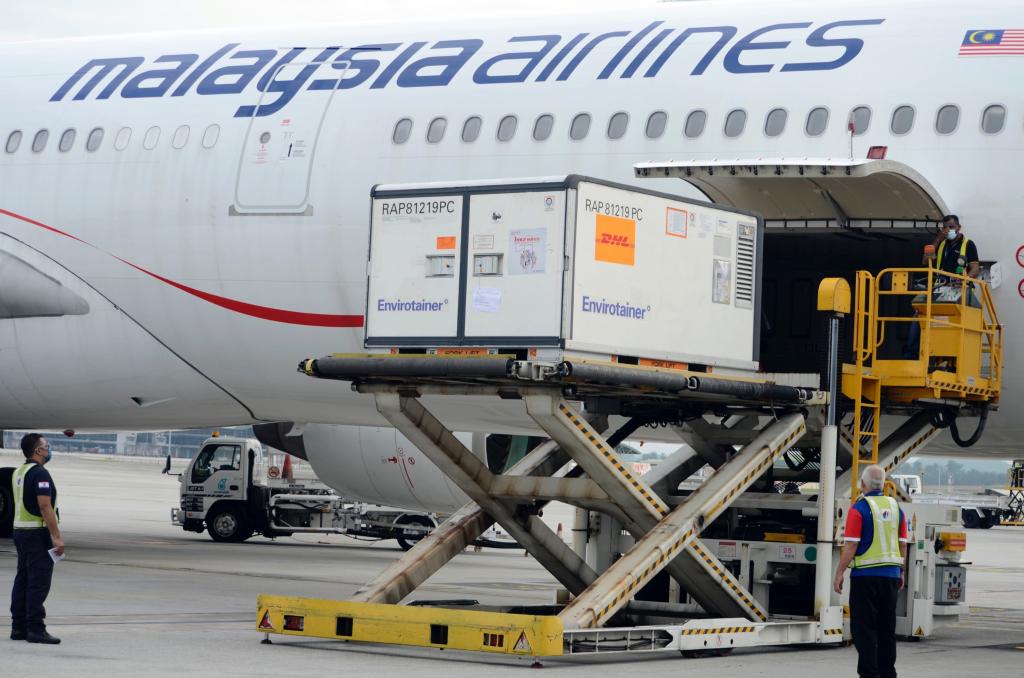 2021年8月20日,首批中國康希諾新冠疫苗運抵馬來西亞吉隆坡國際機場。(新華社發(fā),馬來西亞科學(xué)、工藝和創(chuàng)新部供圖)
