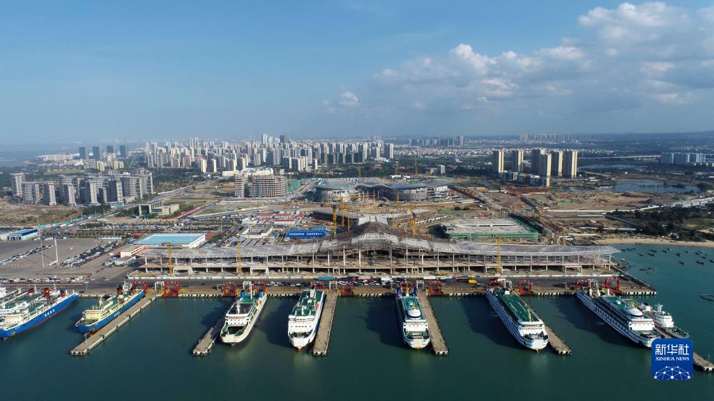這是2022年2月11日拍攝的??谛潞8劭瓦\(yùn)綜合樞紐項(xiàng)目施工現(xiàn)場(chǎng)(無(wú)人機(jī)照片)。新華社發(fā)(黎多江 攝)