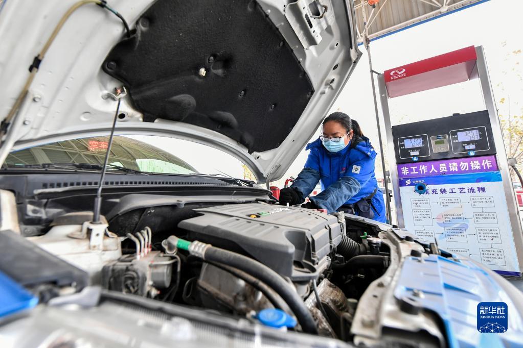 山西省晉城市澤北加氣站工作人員在為汽車加煤層氣(2020年12月9日攝)。新華社記者 曹陽(yáng) 攝