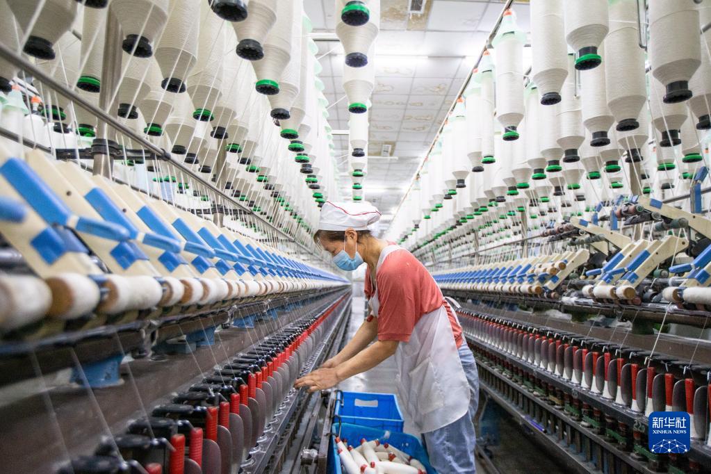2月28日,工人在江蘇省海安市南莫鎮(zhèn)一家紡織公司生產車間內忙碌。新華社發(fā)(翟慧勇 攝)