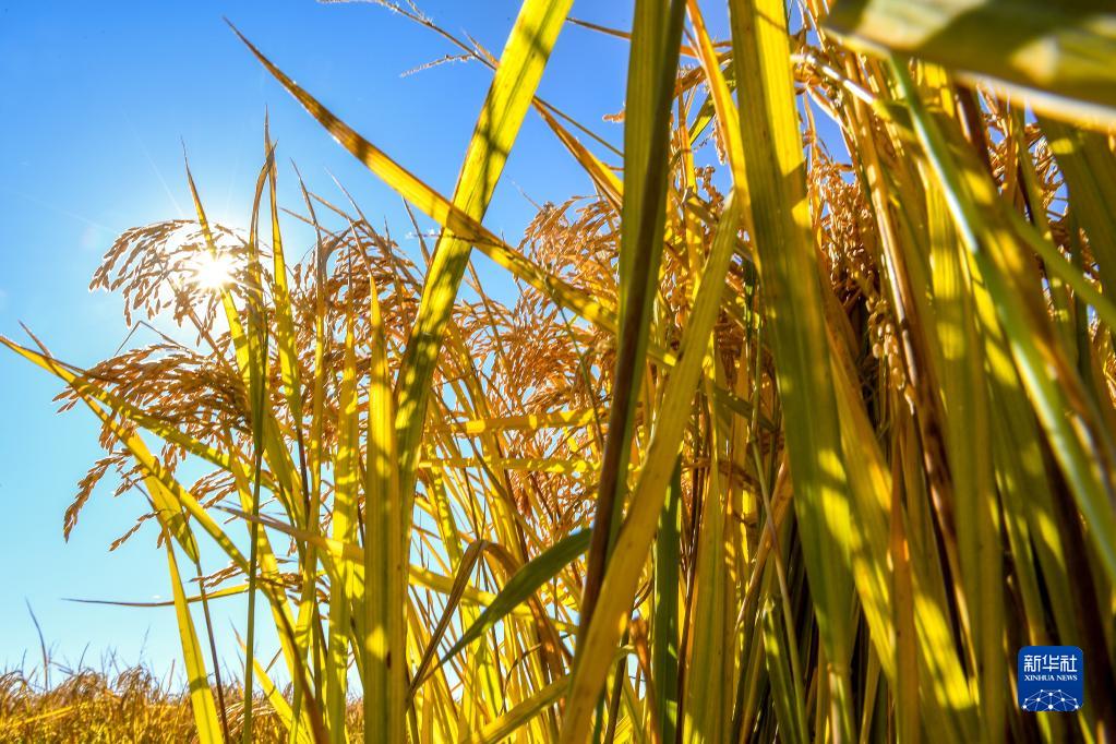 這是2021年10月12日在吉林省吉林市永吉縣萬昌鎮(zhèn)拍攝的水稻。新華社記者 張楠 攝