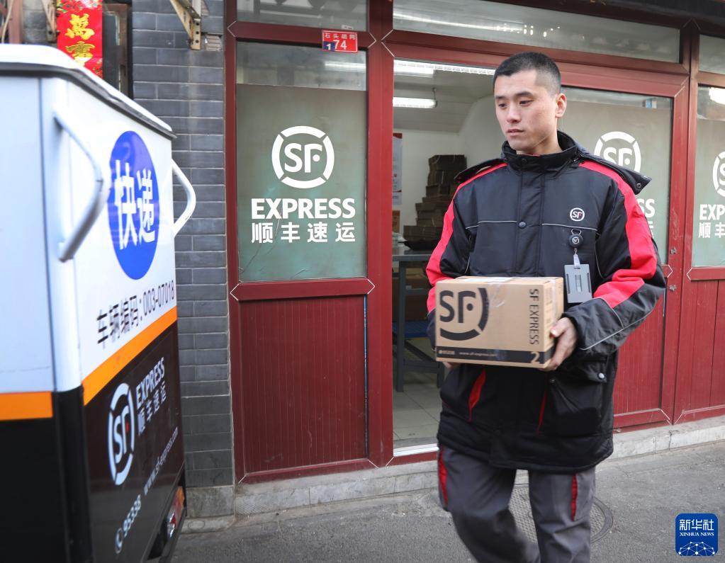 順豐北京石頭胡同營業(yè)站“快遞小哥”劉闊在整理包裹(2019年2月1日攝)。新華社記者李德欣攝