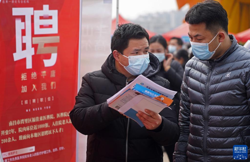 2月25日,江西省南昌市灣里管理局開展“春風(fēng)行動(dòng)”線下招聘活動(dòng)。這是求職者在招聘會(huì)現(xiàn)場(chǎng)交流。新華社記者 萬象 攝