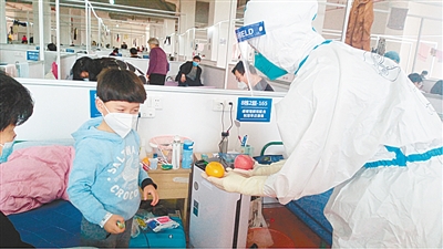 在上海,當(dāng)下抗疫戰(zhàn)斗正酣,各項(xiàng)物資吃緊,雖然只是一瓶可樂,但要滿足患者的小小的“過分”要求確實(shí)不容易,但楊陽一邊耐心地安撫患者情緒,另一方面暗暗把這件事記在心里。 第二天中午,楊陽在領(lǐng)取自己的工作餐時(shí),意外發(fā)現(xiàn)物資保障部門當(dāng)天為每位援滬工作人員配送了一瓶可樂??匆娺@瓶難得的“肥宅快樂水”,楊陽簡直像收到玫瑰花一樣高興,可想起14床患者,楊陽還是收好了這瓶可樂,又在輪值入艙時(shí)帶上了自己舍不得吃的幾個(gè)面包和水果,分贈(zèng)給方艙內(nèi)的小朋友們。