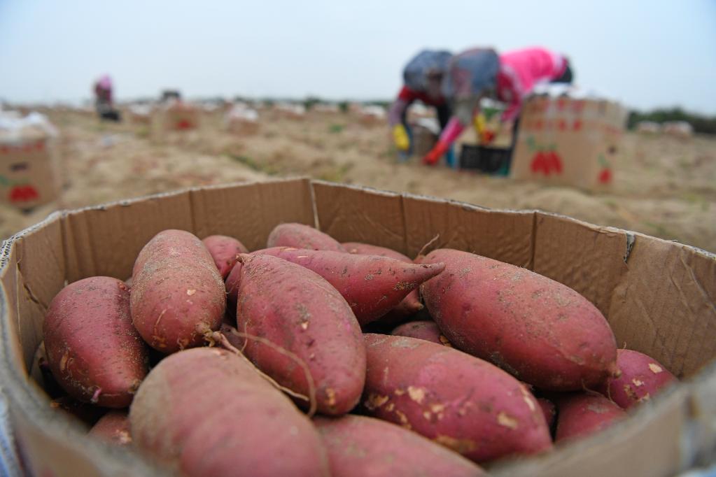 汕尾碣石鎮(zhèn)滴水村,剛收獲的甘薯裝滿紙箱等待運輸。新華社記者梁旭攝