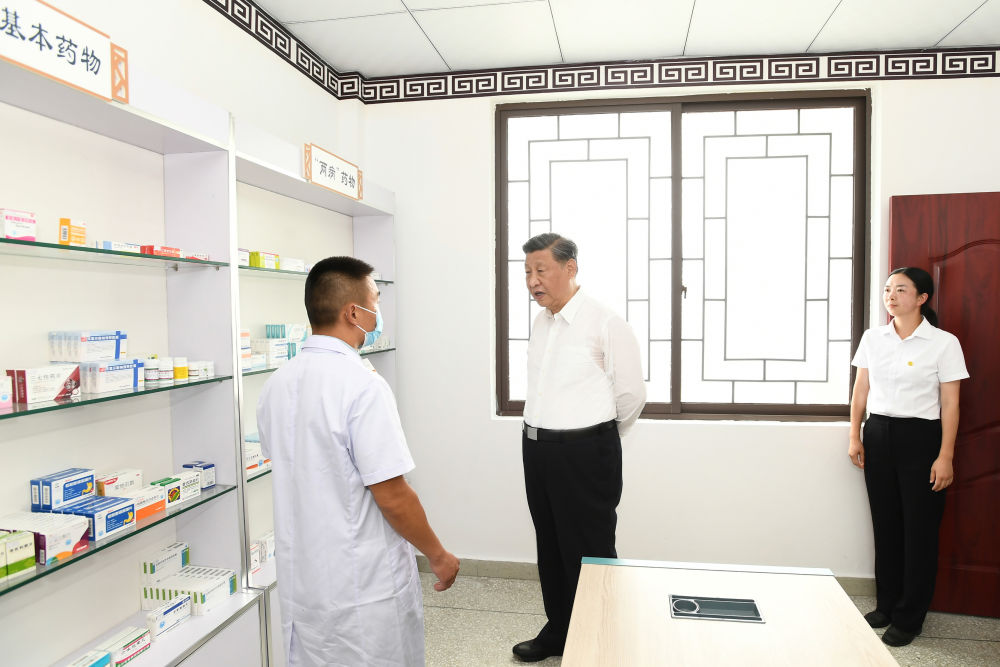 ↑2022年6月8日,習(xí)近平步行察看四川省眉山市東坡區(qū)太和鎮(zhèn)永豐村村容村貌,考察村衛(wèi)生站,詳細(xì)了解改善人居環(huán)境、做好農(nóng)村疫情防控等情況。