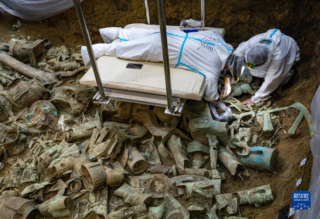 2020年以來,四川省文物考古研究院、北京大學、四川大學等科研機構和高校組成聯(lián)合考古隊在三星堆祭祀區(qū)開展發(fā)掘,在1986年發(fā)現的1、2號“祭祀坑”旁邊,相繼發(fā)現、發(fā)掘了距今約3000年的3號至8號六個“祭祀坑”。截至目前,六個“祭祀坑”共出土編號文物近13000件,其中相對完整的文物3155件。