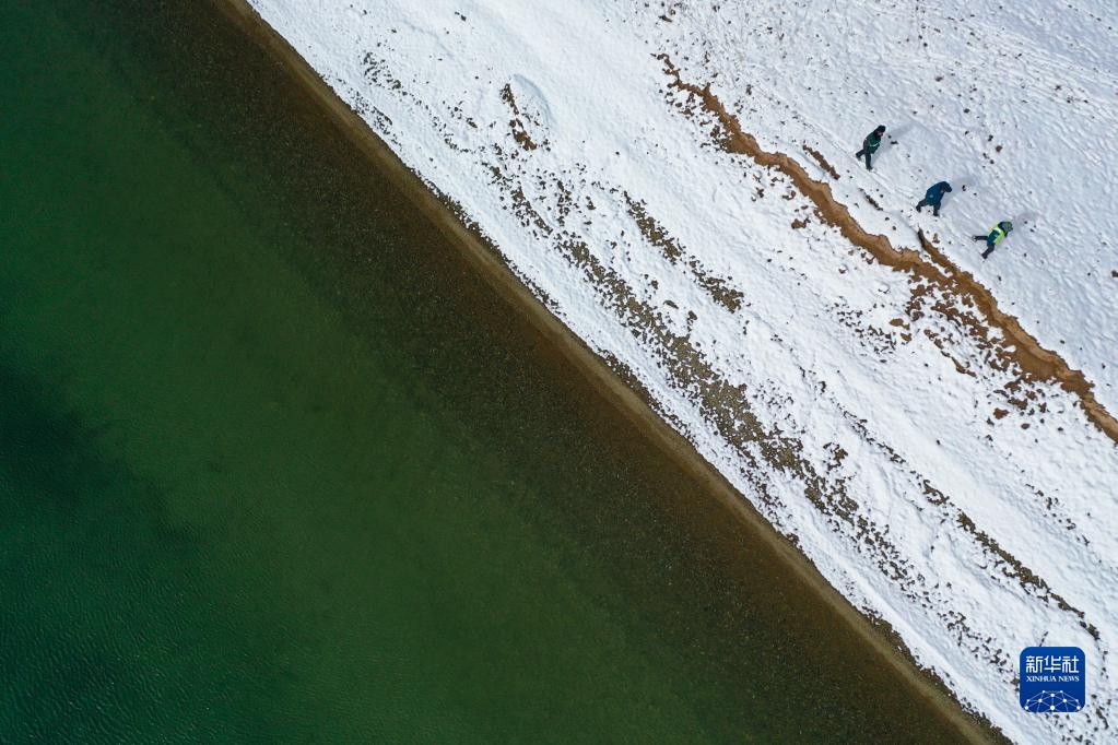 2021年10月20日,在青海省果洛藏族自治州瑪多縣扎陵湖鄉(xiāng)勒那村,三江源國(guó)家公園黃河源園區(qū)生態(tài)管護(hù)員在巡護(hù)(無(wú)人機(jī)照片)。新華社記者 張龍 攝