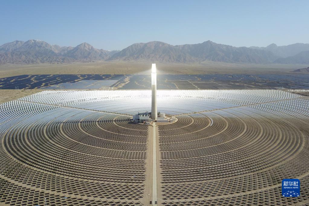 這是2022年6月8日在青海省海西蒙古族藏族自治州德令哈市光伏(光熱)產(chǎn)業(yè)園拍攝的青海中控德令哈50兆瓦光熱電站(無(wú)人機(jī)照片)。新華社記者 范培珅 攝