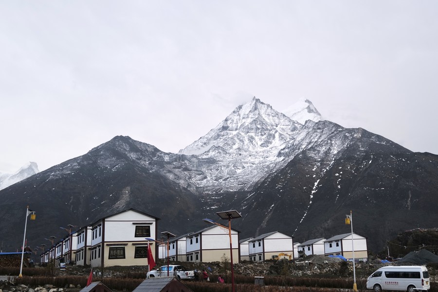 這是雪山下絨轄鄉(xiāng)的藏式新居(4月10日攝)。新華社記者 劉潁 攝