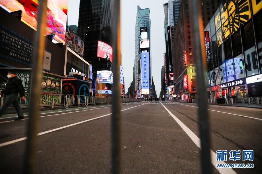 這是2020年12月31日拍攝的空蕩的美國紐約時(shí)報(bào)廣場。新華社記者 王迎 攝