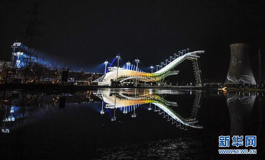這是2019年12月14日拍攝的北京首鋼滑雪大跳臺夜景。新華社記者 夏一方 攝