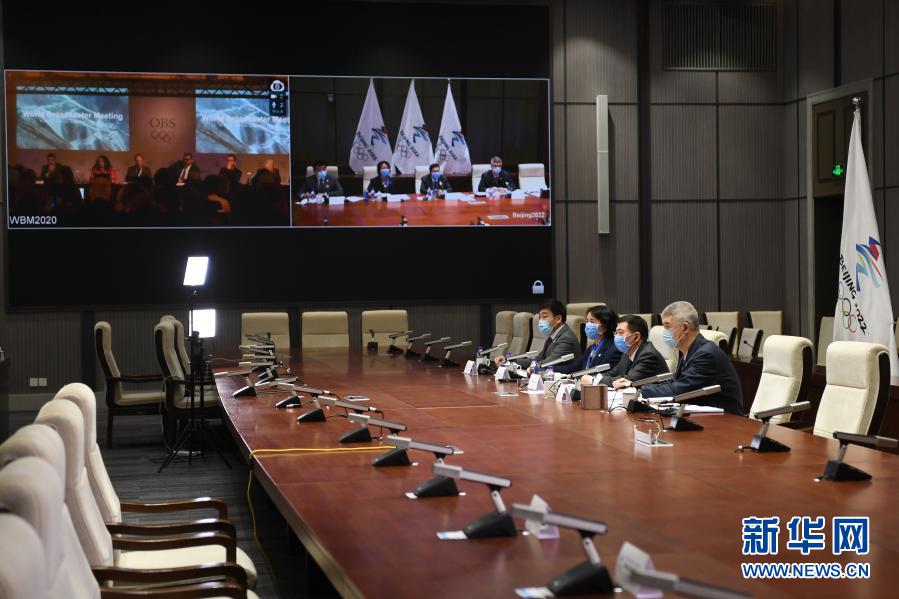 這是2020年2月24日,北京冬奧會和冬殘奧會2020年世界轉(zhuǎn)播商大會北京分會場通過視頻連線方式參會。新華社記者 鞠煥宗 攝