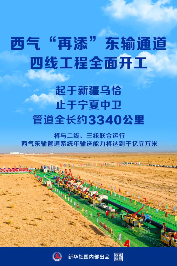 ????新華社北京9月28日電(記者戴小河)國(guó)家管網(wǎng)集團(tuán)西氣東輸四線工程28日正式開工,工程起于新疆烏恰縣,止于寧夏中衛(wèi)市,管道全長(zhǎng)約3340公里。