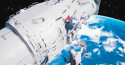 航天員從天宮空間站出艙開(kāi)展巡天空間望遠(yuǎn)鏡維護(hù)作業(yè)示意圖。
