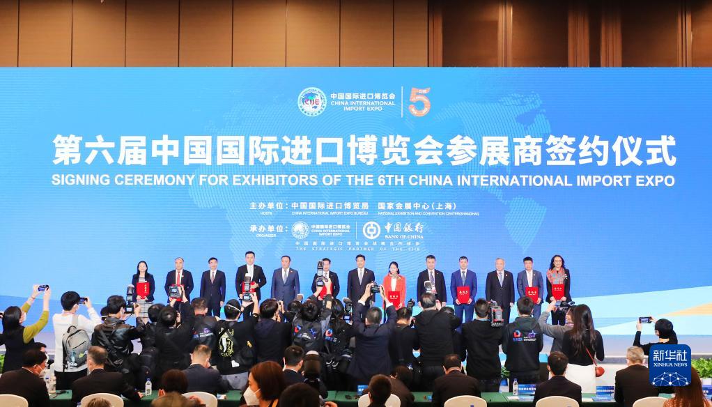 2022年11月6日,2022年中國(guó)國(guó)際進(jìn)口博覽會(huì)參展商聯(lián)盟大會(huì)在上海舉行。這是在大會(huì)期間進(jìn)行的第六屆進(jìn)博會(huì)參展商簽約儀式。新華社記者 方喆 攝